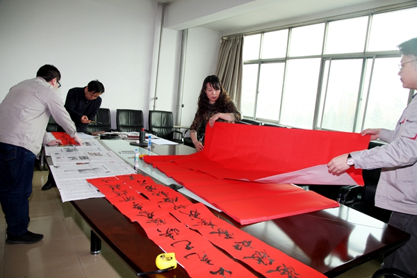 新春臨近,千家萬戶都要張貼春聯,是象征吉祥、表達人們向往美好生活的傳統風俗。1月31日,美鑫公司特邀書法愛好者書寫春聯,將節日的祝福提前送到員工身邊。 只見書法老師在提前裁好的紅紙上盡情潑墨、筆走龍蛇,一張張散發著清新墨香的喜慶大“福”字,多種書體龍飛鳳舞各顯神韻,一副副春聯盡顯眼前。機關辦公樓的職工也紛紛聞訊趕到現場觀看書法老師書寫對聯,不時發出一聲聲驚嘆,也為書法老師出色的毛筆字喝彩。看,那對聯的內容也是相當的豐富:有對美鑫的祝福“以人為本科學發展循環經濟結碩果,砥礪奮進逐夢前行示范園區譜新篇”,也有年輕人對新年的期望“暴瘦”等。 “煤電鋁循環打造千秋昌盛,可持續發展鑄就輝煌大業。”書法老師為美鑫公司書寫了幾十副對聯,為年輕人也送出了新年期望十余張字。拿到祝福的職工也紛紛對老師表示感謝,希望自己在新的一年中能夠向手里春聯寫的那樣:快樂、暴瘦、暴美。 |