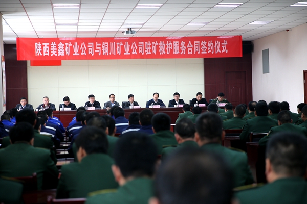 3月8日上午,陜西美鑫礦業公司與銅川礦業公司駐礦服務合同簽約儀式在銅川礦業救護大隊六樓會議室隆重舉行。陜煤集團煤炭事業部副經理、陜煤股份副總工程師歸會林、陜西美鑫產業投資公司總經理封建利、銅川礦業公司總會計師萬軍鋒、陜西有色金屬控股集團公司安環部關凱、陜西美鑫產業投資公司副總經理、總工程師元勝利、陜西美鑫產業投資公司綜合辦主任池遠宏、陜西美鑫產業投資公司安全環境管理部主任孟祥輯、陜西美鑫礦業公司總經理郭百強,銅川礦業公司礦山救護大隊大隊長劉平治,以及陜西美鑫礦業有限公司和銅川礦業救護大隊干部職工代表90余人參加簽約儀式。 上午10時簽約儀式在銅川礦業公司救護大隊六樓會議室正式開始。首先,礦山救護大隊大隊長劉平治作了熱情洋溢的歡迎詞,對促成本次簽約合作和長期以來關心支持救護隊發展建設的上級組織與兄弟單位表示感謝,對參加簽約儀式的來賓表示歡迎。隨后,陜西美鑫產業投資公司安全環境管理部主任孟祥輯簡要介紹了簽約雙方情況和簽約背景。 接著,陜西美鑫礦業公司總經理郭百強與銅川礦山救護大隊大隊長劉平治在雙方與會人員共同見證下簽署了《礦山救護服務合同書》。 銅川礦業公司總會計師萬軍鋒在講話中對救護工作提出具體要求。一是要提高認識,牢記使命,切實發揮國家隊安全輻射帶動作用。二是要強化紀律,服從管理,快速融入礦區工作。三是要統籌安排,協調推進,扎實提升應急處置能力。為做好駐礦救護服務工作提供更加堅實有力的專業技術保障。陜西美鑫產業投資有限公司副總經理、總工程師元勝利在講話中對雙方成功簽約表示祝賀,對做好今后駐礦救護服務工作提出了三點要求。一是要求美鑫礦業公司增強團隊意識,全力做好駐礦救護中隊的生活保障工作。二是要求救護大隊切實發揮好專業技術優勢,推動冶坪煤礦項目安全平穩建設。三是希望雙方攜手并進,促進更大范圍、更深領域的交流合作。奮力譜寫老牌國企與新生國企共謀發展的新篇章,努力實現增加企業效益與增進職工福祉的“雙豐收”。 簽約儀式結束后,陜西美鑫礦業公司有關人員在公司礦山救護大大隊長劉平治等陪同下實地參觀了救護大隊的救援基地以及救援設備等,并就做好今后的駐礦服務工作進行了友好交流。