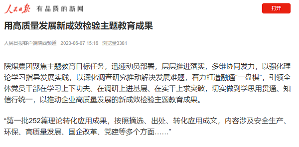 陜煤集團(tuán)聚焦主題教育目標(biāo)任務(wù),迅速動員部署,層層推進(jìn)落實,多維協(xié)同發(fā)力,以強(qiáng)化理論學(xué)習(xí)指導(dǎo)發(fā)展實踐,以深化調(diào)查研究推動解決發(fā)展難題,著力打造融通“一盤棋”,引領(lǐng)全體黨員干部在學(xué)習(xí)上下功夫、在調(diào)研上進(jìn)基層、在實干上求突破,切實做到學(xué)思用貫通、知信行統(tǒng)一,以推動企業(yè)高質(zhì)量發(fā)展的新成效檢驗主題教育成果。 “第一批252篇理論轉(zhuǎn)化應(yīng)用成果,按照摘選、出處、轉(zhuǎn)化應(yīng)用成文,內(nèi)容涉及安全生產(chǎn)、環(huán)保、高質(zhì)量發(fā)展、國企改革、黨建等多個方面……” “在理論學(xué)習(xí)中,我們堅持讀原著學(xué)原文,悟原理知原義,堅持學(xué)以致用,以黨的創(chuàng)新理論指導(dǎo)和推動工作。”主題教育理論學(xué)習(xí)(宣傳)組工作人員王英楠打開正在篩選整理的理論集錦文檔,闡述在集團(tuán)公司中層四級以上管理人員中開展“主題教育集錦——理論轉(zhuǎn)化應(yīng)用成果”征集活動的出發(fā)點(diǎn)。摘選規(guī)定學(xué)習(xí)資料書目中感悟最深的一段話,找方向、找思路、找辦法,謀劃推動發(fā)展的具體實踐;顒尤螌⑿纬衫碚撧D(zhuǎn)化應(yīng)用成果700余篇。 目前陜煤集團(tuán)擁有基層黨組織2309個,其中黨委194個、黨總支88個、黨支部2027個,黨員3.6萬名,職工近14萬人,這也是陜煤集團(tuán)主題教育需要覆蓋到的“最大公約數(shù)”。陜煤集團(tuán)黨委緊緊圍繞“學(xué)思想、強(qiáng)黨性、重實踐、建新功”總要求,高站位“強(qiáng)學(xué)”,做黨的創(chuàng)新理論捍衛(wèi)者,推動班子帶頭學(xué)、干部領(lǐng)讀學(xué)、黨員互促學(xué)、職工參與學(xué)。各級黨委以集中領(lǐng)學(xué)、集中自學(xué)和專題學(xué)習(xí)為主要形式,舉辦了不少于一周的領(lǐng)導(dǎo)班子讀書班,開展實踐研學(xué);優(yōu)化黨委理論學(xué)習(xí)中心組學(xué)習(xí)方式,開展“1+6”專題學(xué)習(xí)研討;各級領(lǐng)導(dǎo)班子成員帶頭講專題黨課、開展宣講;各級黨組織依托“三會一課”、主題黨日等黨內(nèi)組織生活,利用黨建業(yè)務(wù)訓(xùn)練中心等組織黨員干部學(xué)習(xí);結(jié)合常態(tài)化黨史學(xué)習(xí)教育,運(yùn)用紅色教育資源和黨性教育基地開展現(xiàn)場教學(xué)。 在做好規(guī)定動作的同時,陜煤集團(tuán)各級黨組織積極拓展創(chuàng)新主題教育方式方法。榆林化學(xué)創(chuàng)新開展“主題教育天天學(xué)、周周測”活動,常態(tài)化推進(jìn)主題教育理論學(xué)習(xí);韓城礦業(yè)公司機(jī)關(guān)黨工委開展“誦讀原著原文 強(qiáng)素質(zhì)作貢獻(xiàn) 盡顯履職擔(dān)當(dāng)”主題教育誦讀競賽“思政課堂”;陜煤供應(yīng)鏈公司針對大宗貿(mào)易各企業(yè)經(jīng)營單元覆蓋全國、人員集中難的特點(diǎn),開啟“線上+線下”“一人讀+大家談”的“時空同頻”模式,創(chuàng)新舉辦與上下游供應(yīng)商及大客戶黨組織“聯(lián)學(xué)聯(lián)建·連心同行”主題黨日活動,開展“黨員夜讀”微黨課、“學(xué)思沙龍”讀書會……各單位掀起主題教育熱潮,實現(xiàn)黨員職工學(xué)習(xí)全覆蓋,讓黨的創(chuàng)新理論融入黨員思想和經(jīng)營管理實踐,做到“飛入尋常百姓家”。 主題教育啟動后,陜煤集團(tuán)緊扣大興調(diào)查研究行動方案12方面調(diào)研內(nèi)容,在課題選取上,圍繞“事關(guān)全局的戰(zhàn)略性,破解復(fù)雜難題的對策性、新時代新情況的前瞻性、重大工作項目的跟蹤性、典型案例的剖析式、推動落實的督查式”六種模式,強(qiáng)化問題意識和結(jié)果導(dǎo)向,堅持用好調(diào)查研究看家本領(lǐng),以深化調(diào)研解決難題、推動發(fā)展。 陜煤集團(tuán)領(lǐng)導(dǎo)班子放開視野、打開思路,一方面,帶頭“沉下去”,直奔基層現(xiàn)場、直面干部職工,著力解決基層單位和職工在生產(chǎn)和生活中存在的難點(diǎn)、堵點(diǎn)、痛點(diǎn)和熱點(diǎn)問題,運(yùn)用黨的創(chuàng)新理論調(diào)查真情況、研究真問題;另一方面,“走出去”對標(biāo),向優(yōu)秀的央企、省屬企業(yè)學(xué),向優(yōu)秀的地市學(xué)好做法、好機(jī)制。 截至目前,陜煤集團(tuán)公司領(lǐng)導(dǎo)外出調(diào)研共23次,調(diào)研集團(tuán)所屬企業(yè)18戶、調(diào)研外部單位4家。最終調(diào)研成果將形成陜煤“十四五”產(chǎn)業(yè)高質(zhì)量發(fā)展落地實踐研究報告和若干個分支調(diào)研課題報告,為集團(tuán)高質(zhì)量發(fā)展提供智力支撐。 調(diào)查研究組向所屬單位深入解讀調(diào)研工作要點(diǎn)及月度考核重點(diǎn),按照“征題、選題、領(lǐng)題、開題、結(jié)題、用題”全鏈條調(diào)研機(jī)制,對52個直屬黨委的調(diào)研工作予以指導(dǎo),切實形成完整調(diào)查研究工作鏈,確保調(diào)研工作上下協(xié)同一盤棋。 為滾動推動主題教育重點(diǎn)工作扎實落實,陜煤集團(tuán)發(fā)揮考核指揮棒作用,主題教育6個工作組同步制定形成考核評估辦法,將理論學(xué)習(xí)、調(diào)查研究、推動發(fā)展、檢視整改、建章立制方面內(nèi)容納入考核評估,細(xì)化分解月度進(jìn)度清