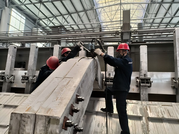 電解槽進電端軟連接是立柱母線與平衡母線重要的連接部件,起到導電作用,使立柱母線在上下移動過程中不會破壞母線結構。 但在電解作業過程中,天車打殼機頭易碰撞到軟連接,致使其產生破損,從而導致壓降增大、電耗增高,直接影響到生產實際。針對此種情況,車間安排綜合班人員在不影響正常生產的情況下,對電解槽進電端軟連接鋼帶損壞、脫落部分進行捆扎修復。經過5天的努力,600余條電解槽進電端軟連接全部修復完畢,消除了軟連接破損造成的安全隱患和能源消耗。 此次修復工作,是電解二車間響應公司“降本增效”號召的又一有力舉措。今后,車間將持續引導動員職工積極參與生產設備設施的改造、修復,降低生產成本,減少能源損耗,以實際行動助力綠色低碳發展。 |