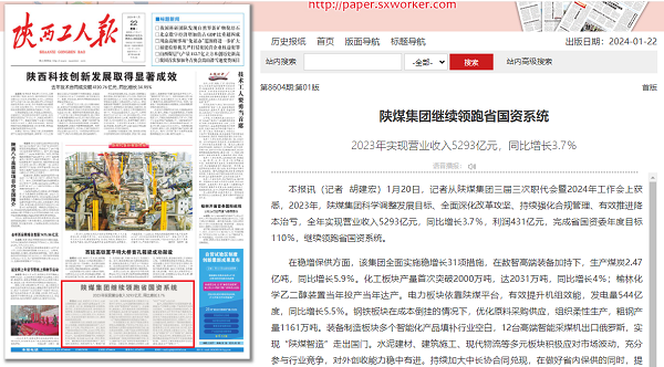 陜煤集團(tuán)繼續(xù)領(lǐng)跑省國資系統(tǒng) 2023年實(shí)現(xiàn)營業(yè)收入5293億元,同比增長3.7% 本報(bào)訊(記者 胡建宏)1月20日,記者從陜煤集團(tuán)三屆三次職代會(huì)暨2024年工作會(huì)上獲悉,2023年,陜煤集團(tuán)科學(xué)調(diào)整發(fā)展目標(biāo)、全面深化改革攻堅(jiān)、持續(xù)強(qiáng)化合規(guī)管理、有效推進(jìn)降本治虧,全年實(shí)現(xiàn)營業(yè)收入5293億元,同比增長3.7%,利潤431億元,完成省國資委年度目標(biāo)110%,繼續(xù)領(lǐng)跑省國資系統(tǒng)。 在穩(wěn)增保供方面,該集團(tuán)全面實(shí)施穩(wěn)增長31項(xiàng)措施,在數(shù)智高端裝備加持下,生產(chǎn)煤炭2.47億噸,同比增長5.9%。化工板塊產(chǎn)量首次突破2000萬噸,達(dá)2031萬噸,同比增長4%;榆林化學(xué)乙二醇裝置當(dāng)年投產(chǎn)當(dāng)年達(dá)產(chǎn)。電力板塊依靠陜煤平臺(tái),有效提升機(jī)組效能,發(fā)電量544億度,同比增長5.5%。鋼鐵板塊在成本倒掛的情況下,優(yōu)化原料采購供應(yīng),組織柔性生產(chǎn),粗鋼產(chǎn)量1161萬噸。裝備制造板塊多個(gè)智能化產(chǎn)品填補(bǔ)行業(yè)空白,12臺(tái)高端智能采煤機(jī)出口俄羅斯,實(shí)現(xiàn)“陜煤智造”走出國門。水泥建材、建筑施工、現(xiàn)代物流等多元板塊積極應(yīng)對市場波動(dòng),充分參與行業(yè)競爭,對外創(chuàng)收能力穩(wěn)中有進(jìn)。持續(xù)加大中長協(xié)合同兌現(xiàn),在做好省內(nèi)保供的同時(shí),提升重慶及“兩湖一江”等跨區(qū)域能源供應(yīng)和資源互補(bǔ)能力。 在管理提效方面,他們嚴(yán)格落實(shí)降本增效26條硬措施,嚴(yán)控非生產(chǎn)性支出,加大采供銷和人財(cái)物價(jià)值鏈成本管控力度,強(qiáng)化現(xiàn)金流管理,主要產(chǎn)品成本得到有效控制。與此同時(shí),穩(wěn)步推進(jìn)改革,補(bǔ)齊短板弱項(xiàng)。以9個(gè)方面37項(xiàng)改革任務(wù)和工作措施,全面推進(jìn)新一輪國企改革深化提升行動(dòng),北元、陜鋼“雙百企業(yè)”改革評價(jià)和改進(jìn)提升全面完成。開源證券、西煤機(jī)分別增補(bǔ)入圍“雙百”“科改”示范企業(yè)。 此外,該集團(tuán)聚焦主業(yè)延鏈強(qiáng)鏈補(bǔ)鏈、破解生產(chǎn)過程重大問題、產(chǎn)業(yè)轉(zhuǎn)型升級(jí)等方面創(chuàng)新。10米超大采高智能化綜采工作面成為全球井工礦單井單面產(chǎn)能新標(biāo)桿;全國首套5-6米采高2000萬噸/年工作面柔性生產(chǎn)系統(tǒng)成套裝備投入使用;加大災(zāi)害治理技術(shù)成果研究應(yīng)用,實(shí)施井上、井下立體超前治理,陜西首個(gè)“煤炭精細(xì)勘探與智能開發(fā)”實(shí)驗(yàn)室獲批建設(shè)。全年鑒定科技成果項(xiàng)目42項(xiàng),獲權(quán)專利1212項(xiàng),發(fā)布標(biāo)準(zhǔn)29項(xiàng),研發(fā)投入強(qiáng)度達(dá)1.17%。建成32處“智能礦井”、5個(gè)“智慧礦區(qū)”,煤炭智能化產(chǎn)能達(dá)到99%,智能輔助達(dá)到100%。陜西煤業(yè)成功發(fā)布行業(yè)首個(gè)企業(yè)級(jí)《數(shù)據(jù)標(biāo)準(zhǔn)》。加快化工板塊智能運(yùn)營平臺(tái)試點(diǎn)建設(shè),建成34個(gè)“智能工廠”。 |