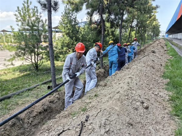 錦陽電廠沖洗平臺(tái)改造項(xiàng)目主要是將原露天7米平臺(tái)改造為長(zhǎng)15米、寬7.4米封閉式陽光棚,實(shí)現(xiàn)運(yùn)煤車輛全方位沖洗。為了確保項(xiàng)目順利實(shí)施、早日竣工投運(yùn),8月12日下午,錦陽電廠機(jī)關(guān)黨支部開展“沖洗平臺(tái)電纜鋪設(shè)”主題黨日活動(dòng)。電廠黨總支書記、經(jīng)理孫陽帶隊(duì)深入項(xiàng)目現(xiàn)場(chǎng),黨員、積極分子約30余人參加此次活動(dòng)。 本次活動(dòng)主要任務(wù)是從卸煤溝PC室到?jīng)_洗平臺(tái)鋪設(shè)長(zhǎng)度約300余米地纜。鋪設(shè)工作開始前,燃運(yùn)部負(fù)責(zé)人就本次鋪設(shè)的路線、分工及安全注意事項(xiàng)進(jìn)行說明。一切就緒后,在指揮人員的安排下,黨員干部扛起電纜打頭陣,一部分人員負(fù)責(zé)放地纜,一部分人員進(jìn)入坑道扛起地纜,大家按照每人間隔2米排成一列,你抬我扛、齊步向前,同拉一根電纜,共擔(dān)一份責(zé)任,經(jīng)過兩個(gè)小時(shí)的共同努力,一條長(zhǎng)約300余米的地纜鋪設(shè)完成,本次活動(dòng)圓滿結(jié)束。 此次主題黨日活動(dòng)不僅有效推進(jìn)了項(xiàng)目實(shí)施進(jìn)程,也展現(xiàn)了黨員干部職工不怕臟、不怕苦、不怕累的奉獻(xiàn)精神,進(jìn)一步提升了機(jī)關(guān)黨支部工作服務(wù)生產(chǎn)的意識(shí),增強(qiáng)了黨支部的凝聚力和戰(zhàn)斗力。 |