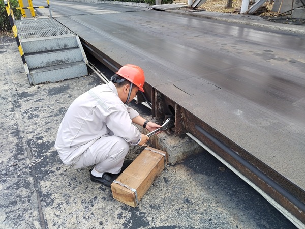 大宗原材料進(jìn)出場(chǎng)的精準(zhǔn)計(jì)量是企業(yè)生產(chǎn)平穩(wěn)運(yùn)行的關(guān)鍵環(huán)節(jié)。7月18日14時(shí)20分,質(zhì)檢計(jì)量中心接到緊急報(bào)告:陽(yáng)極磅房磅秤突發(fā)傳感器傾斜、秤體移位故障,導(dǎo)致石油焦運(yùn)輸車輛無法正常過磅。時(shí)值高溫保供關(guān)鍵期,若不及時(shí)排除故障,將直接影響物料流轉(zhuǎn)效率,甚至延誤生產(chǎn)進(jìn)度。 靠前指揮強(qiáng)部署 爭(zhēng)分奪秒搶進(jìn)度 故障就是命令!中心領(lǐng)導(dǎo)班子迅速反應(yīng),第一時(shí)間趕赴現(xiàn)場(chǎng)指揮調(diào)度,并抽調(diào)技術(shù)骨干成立搶修小組。搶修人員冒著高溫,對(duì)磅秤進(jìn)行全面排查,迅速鎖定故障原因——由于頻繁使用、且持續(xù)高溫導(dǎo)致磅秤限位間隙縮小,車輛在磅秤上急停致使磅秤傳感器偏移、固定限位松動(dòng),造成磅秤部分限位失靈。“必須在2小時(shí)內(nèi)恢復(fù)運(yùn)行!”中心領(lǐng)導(dǎo)下達(dá)硬性指令。在安全管理人員的全程監(jiān)護(hù)下,搶修人員迅速制定搶修方案:利用千斤頂穩(wěn)固磅秤中心,多人協(xié)同撬動(dòng)調(diào)整位移端,重新校準(zhǔn)傳感器并精準(zhǔn)調(diào)試數(shù)據(jù)。 協(xié)同奮戰(zhàn)保運(yùn)行 精準(zhǔn)調(diào)試穩(wěn)計(jì)量 經(jīng)過1小時(shí)20分鐘的緊張作業(yè),15時(shí)50分,磅秤計(jì)量數(shù)據(jù)恢復(fù)穩(wěn)定。經(jīng)反復(fù)校驗(yàn),誤差值嚴(yán)格控制在國(guó)家標(biāo)準(zhǔn)范圍內(nèi)。等候的運(yùn)輸車輛隨即有序過磅,生產(chǎn)恢復(fù)正常運(yùn)轉(zhuǎn)。此次搶修比原定預(yù)案提前40分鐘完成,最大限度地降低了故障對(duì)生產(chǎn)的影響。 |