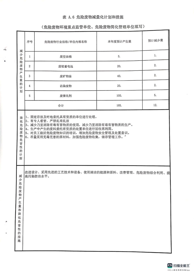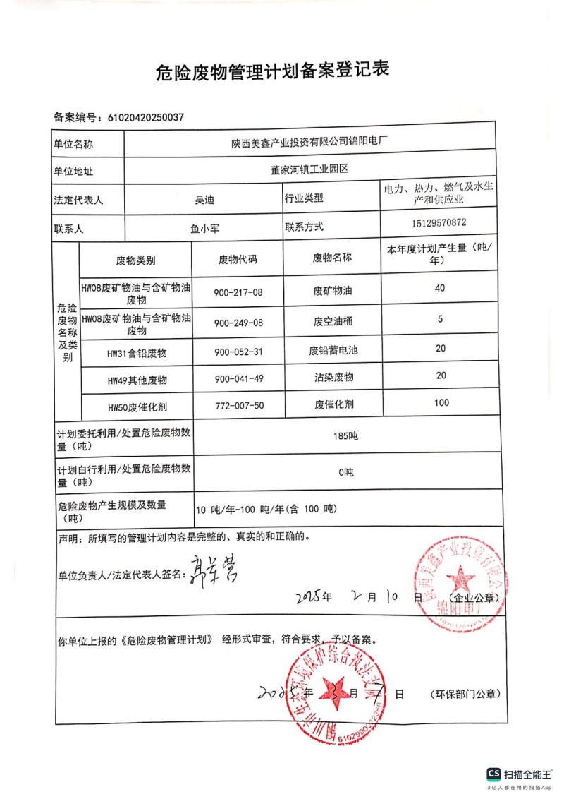 2025年危險廢物管理計劃(錦陽電廠)
