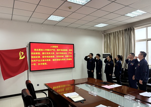 9月11日上午,陽極分公司舉行新黨員入黨宣誓儀式。分公司黨委副書記、紀委書記張鋒,各黨支部書記、委員及新黨員參會,儀式由分公司黨務副主任李成亮主持。 會上首先宣讀新發展黨員名單,各支部書記為新黨員佩戴黨員徽章,在領誓人的帶領下新黨員高舉右拳、面向黨旗一字一句莊嚴宣讀入黨誓詞,隨后新黨員依次簽訂《黨員承諾書》,新黨員代表李鵬程發言表示將以此次宣誓為新起點,在本職崗位上認真履職盡責,用實際行動踐行黨員承諾。 會上,張鋒代表分公司黨委向新黨員提出四點希望:一是要深學理論鑄信仰,堅持學深悟透,以理論學習推動崗位工作;二是要扎根一線強本領,立足崗位攻堅革新,用實績彰顯黨員本色;三是要嚴守紀律葆初心,恪守廉潔底線,以清風正氣樹好形象;四是要緊跟部署擔責任,嚴格落實集團公司“345”黨建體系建設要求,確保各項任務目標落地見效。 |